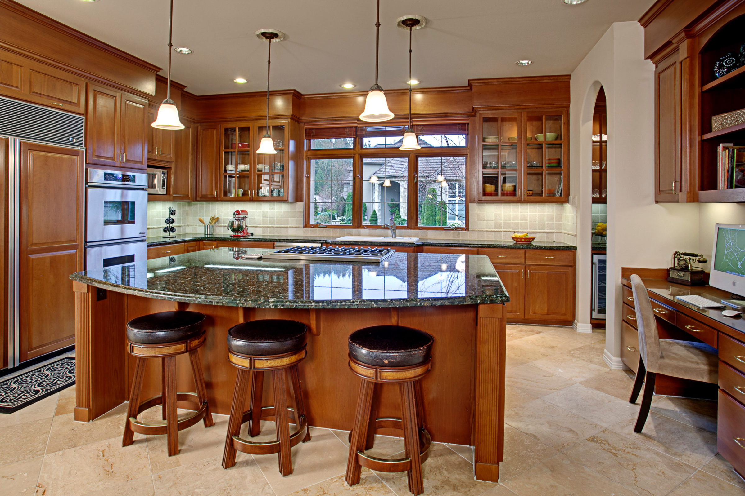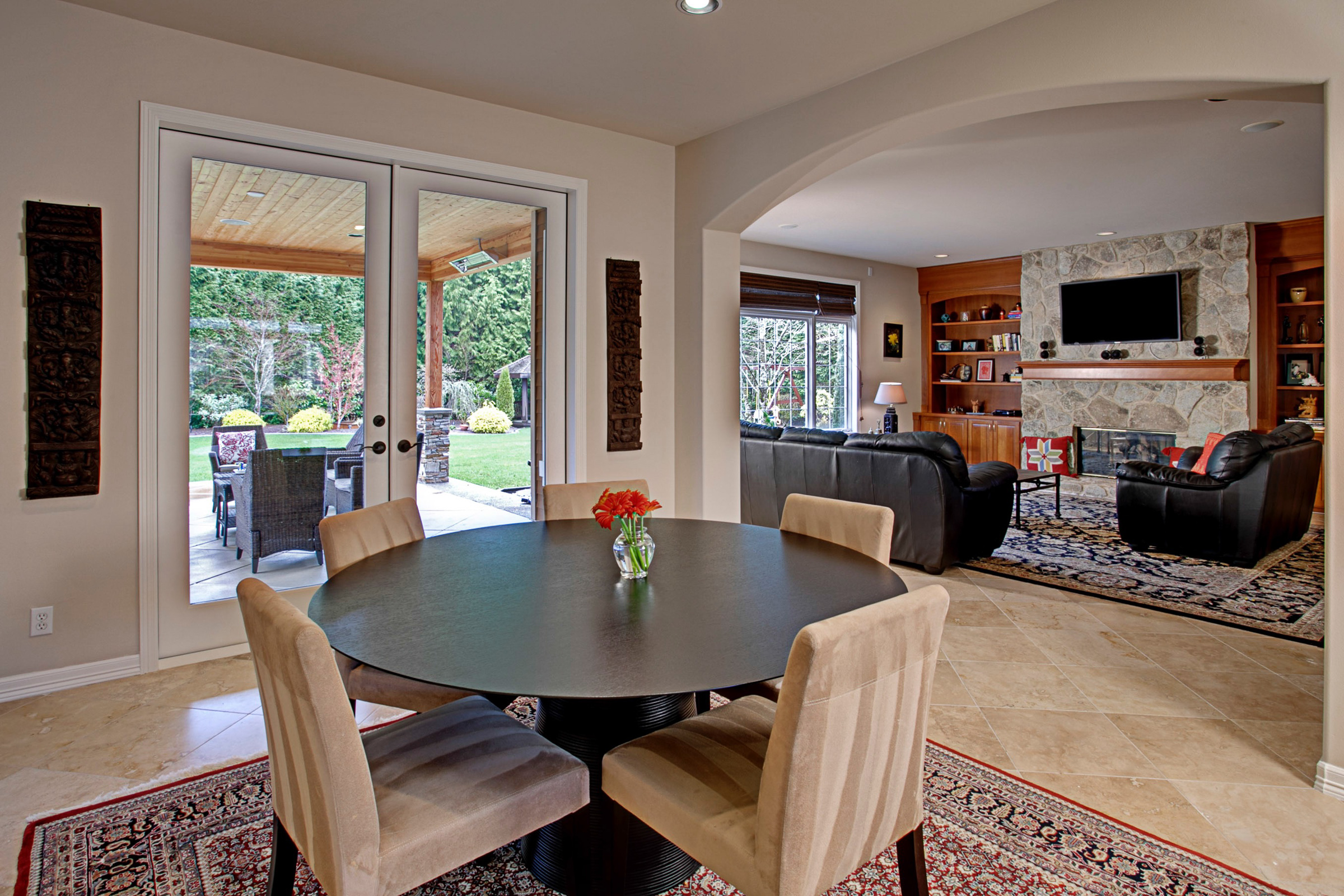 Expansive living spaces, a chef’s kitchen, and elegant entertaining areas open to a resort-style outdoor setting complete with covered dining patio, fire pit, and mature gardens.