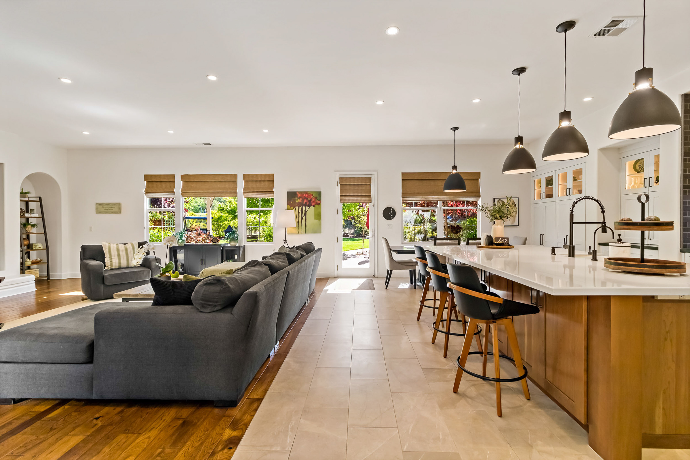 Set along the 15th green in the gated Eagle Ridge Estates community, this Mediterranean-inspired residence blends refined architecture with relaxed California-style living. Expansive interiors of more than 4,300 square feet feature soaring ceilings, rich hardwood flooring, and a beautifully remodeled chef’s kitchen designed for gathering and entertaining.