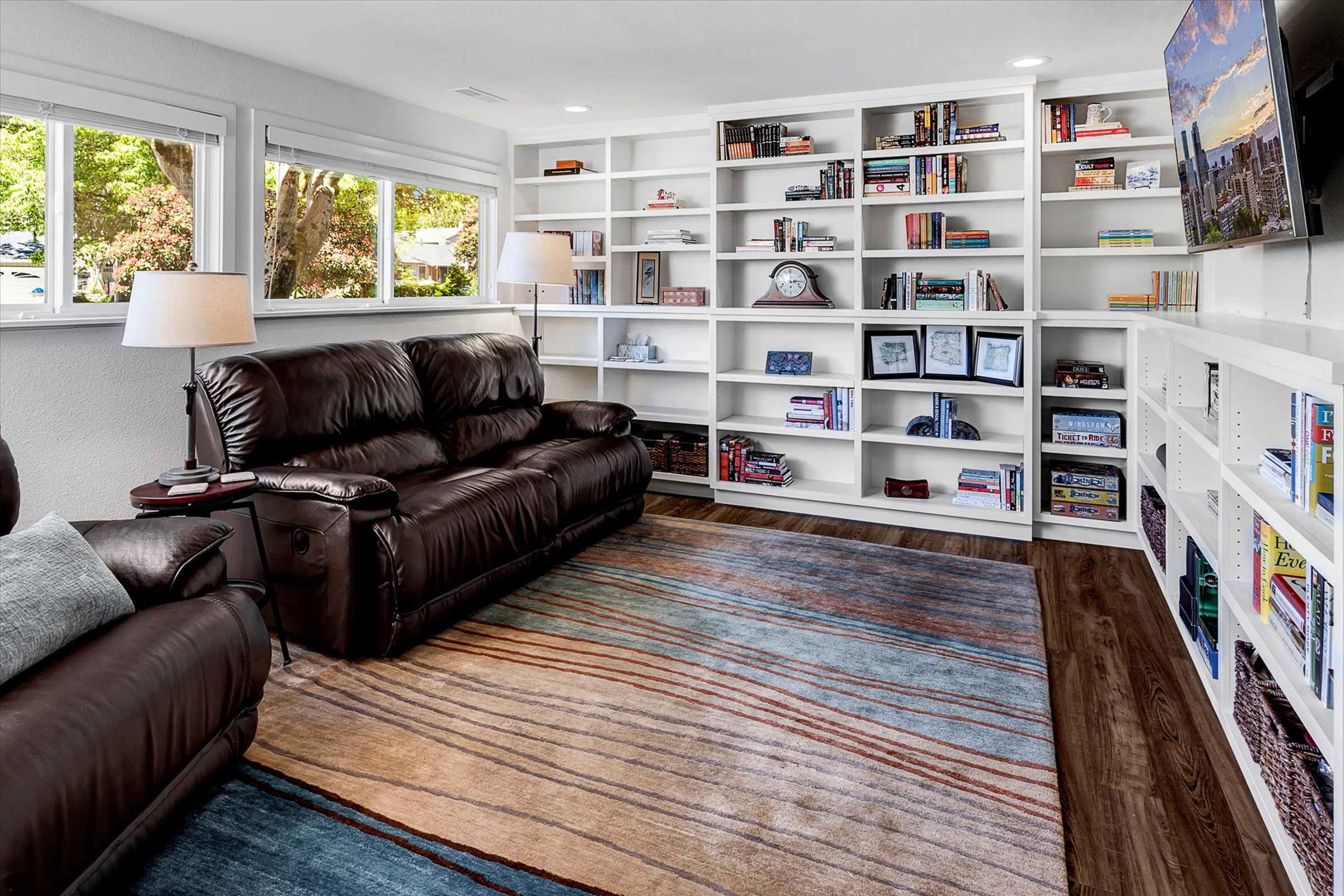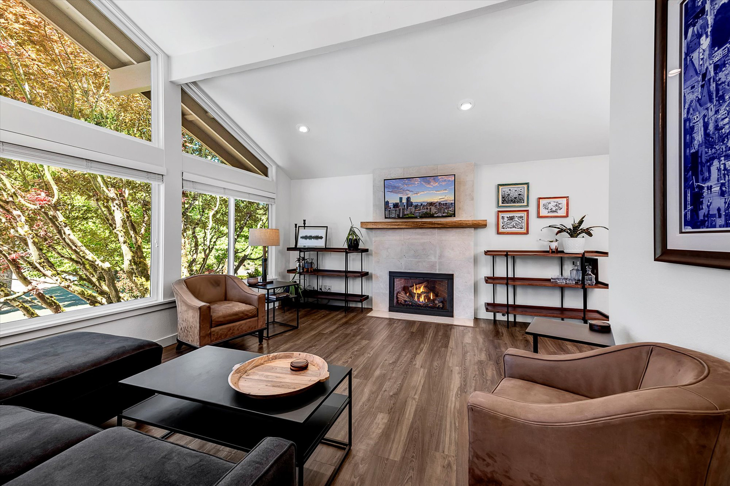 Northwest Craftsman character meets modern comfort in this thoughtfully updated Juanita residence in Kirkland. Vaulted ceilings with exposed beams and abundant natural light welcome you into warm, inviting living spaces, while the extensively remodeled kitchen anchors the home with granite countertops, custom cabinetry, and a generous gathering island.