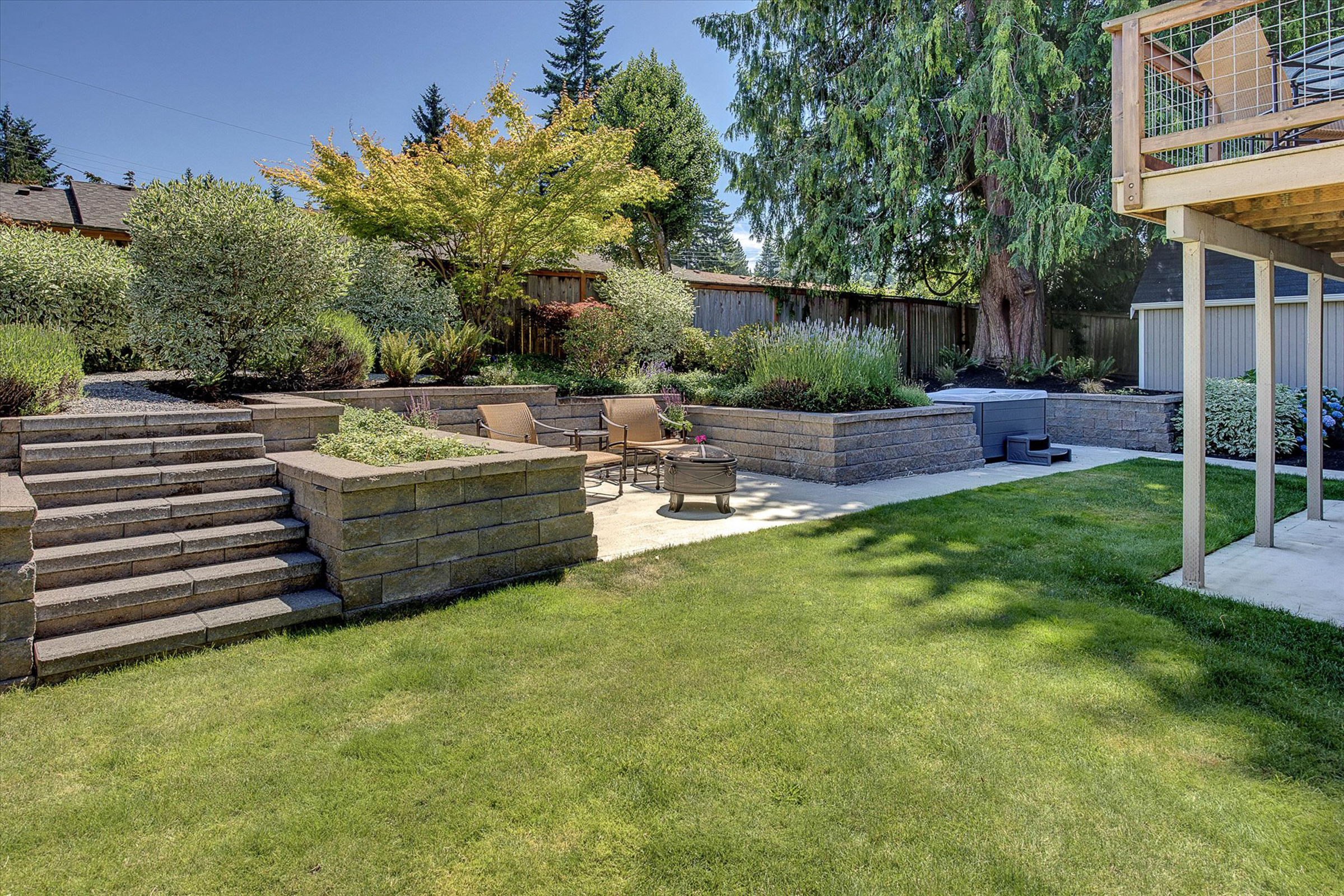 Downstairs flexible living areas provide space for guests, work, or recreation, while the fully landscaped backyard offers a private retreat with patios, garden spaces, and room to unwind.